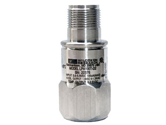 威爾康森低功耗,低電壓振動傳感器,用于危險場所LPA100T-D2型,用于無線和電池操作的頂部出口,低功率,低電壓傳感器,M12連接器,?-28安裝螺柱,50 mV / g,滿量程25 g。