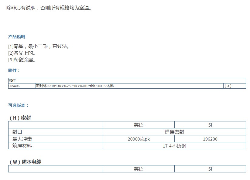 靈敏度:(±15%)0.25 pC / psi(0.036 pC / kPa)
