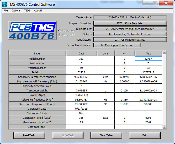 TEDS是傳感器內(nèi)的非易失性存儲(chǔ)器,用于存儲(chǔ)關(guān)于該傳感器的信息。制造商可以將初始信息編程到TEDS芯片中。這可以包括制造商名稱,傳感器類型,型號(hào),序列號(hào)和校準(zhǔn)數(shù)據(jù)。存儲(chǔ)空間分配允許***終用戶添加諸如位置識(shí)別,***新校準(zhǔn)日期和其他***特的傳感器相關(guān)屬性之類的信息。