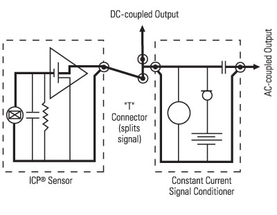 為了充分利用傳感器DTC,特別是在靜態(tài)校準(zhǔn)期間,通常必須對(duì)輸出信號(hào)進(jìn)行直流耦合。***簡(jiǎn)單的方法是使用包含直流耦合開(kāi)關(guān)的信號(hào)調(diào)理器。但是,標(biāo)準(zhǔn)信號(hào)調(diào)節(jié)器也可以通過(guò)使用“T”連接器進(jìn)行直流耦合,如圖17所示。