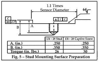 有四種主要方法用于將傳感器連接到預(yù)測性維護中的監(jiān)控位置。它們采用螺柱安裝,粘合劑安裝,磁力安裝以及探針尖端或刺針的使用。每種方法都會影響加速度計的高頻響應(yīng)。螺柱安裝提供***寬的頻率響應(yīng)和***安全可靠的附件。圖5顯示了螺柱安裝傳感器的理想表面準備。