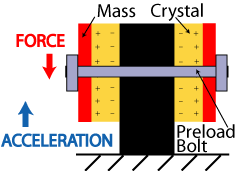 壓電效應(yīng)是石英的固有特性和某些制造的陶瓷晶體??的誘導(dǎo)特性。壓電加速度計(jì)由諸如其傳感元件的晶體構(gòu)成。當(dāng)晶體由于施加的力而經(jīng)受應(yīng)力時(shí),負(fù)離子和正離子將以與施加的力成正比的量積聚在晶體的相對(duì)表面上。對(duì)于加速度計(jì),振動(dòng)質(zhì)量與晶體耦合。當(dāng)受到加速度的影響時(shí),質(zhì)量將使力作用在晶體上,從而產(chǎn)生比例電輸出。這種因果關(guān)系由牛頓運(yùn)動(dòng)定律F = ma定義。