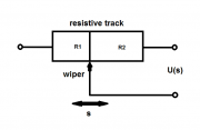 電位發(fā)射器是一維位置傳感器。它基于電位計,一個可調(diào)節(jié)的分壓器。將電壓施加到電阻軌道。擦拭器沿著這個電阻軌道運行,因此將電阻器分成兩部分,如圖1所示(電阻器R1和R2)。在擦拭器的不同位置處,由于電阻的變化,可以測量特定的所得電壓。擦拭器移動,因為它附著在振動物體的運動上。頻率范圍為5 Hz至2 kHz,相當于可能的***大加速度為20 g。電位計變送器可以實現(xiàn)1 mm至2 m的測量行程,并具有無限分辨率。工作溫度范圍介于低于零和150°C的兩位數(shù)溫度之間。
